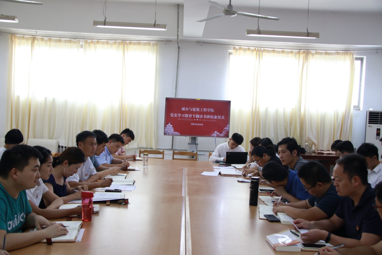 6月23日下午,城建公司党总支在理工楼2321召开了党史学习教育专题读书班结业仪式,党总支书记李振清主持会议。