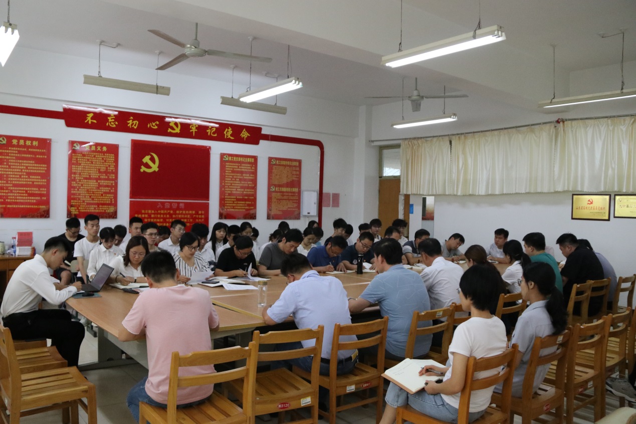 会议进行第一项,三个支部党员代表徐鸿飞、王保亮、张静分享了读书班的心得体会。他们表示:聚焦学史明理、学史增信、学史崇德、学史力行,重温中国共产党走过的百年光辉历程,加强党史学习进一步锤炼了大家的党性修养,强化了理论武装,坚定了理想信念,树牢了初心使命。两位教工党员表示:下一步将进一步严以修身、严以律己,提升个人修养,脚踏实地工作,坚持以员工为本,真正做到教书育人,在自己的岗位上做出突出成绩。员工党员张静代表全体员工党员表态:作为新时代的老员工,作为时代的交接者,作为新时期的年轻党员,将日夜兼程、挥斥方遒,努力争做新时代觉醒青年,不辜负这个伟大的时代。