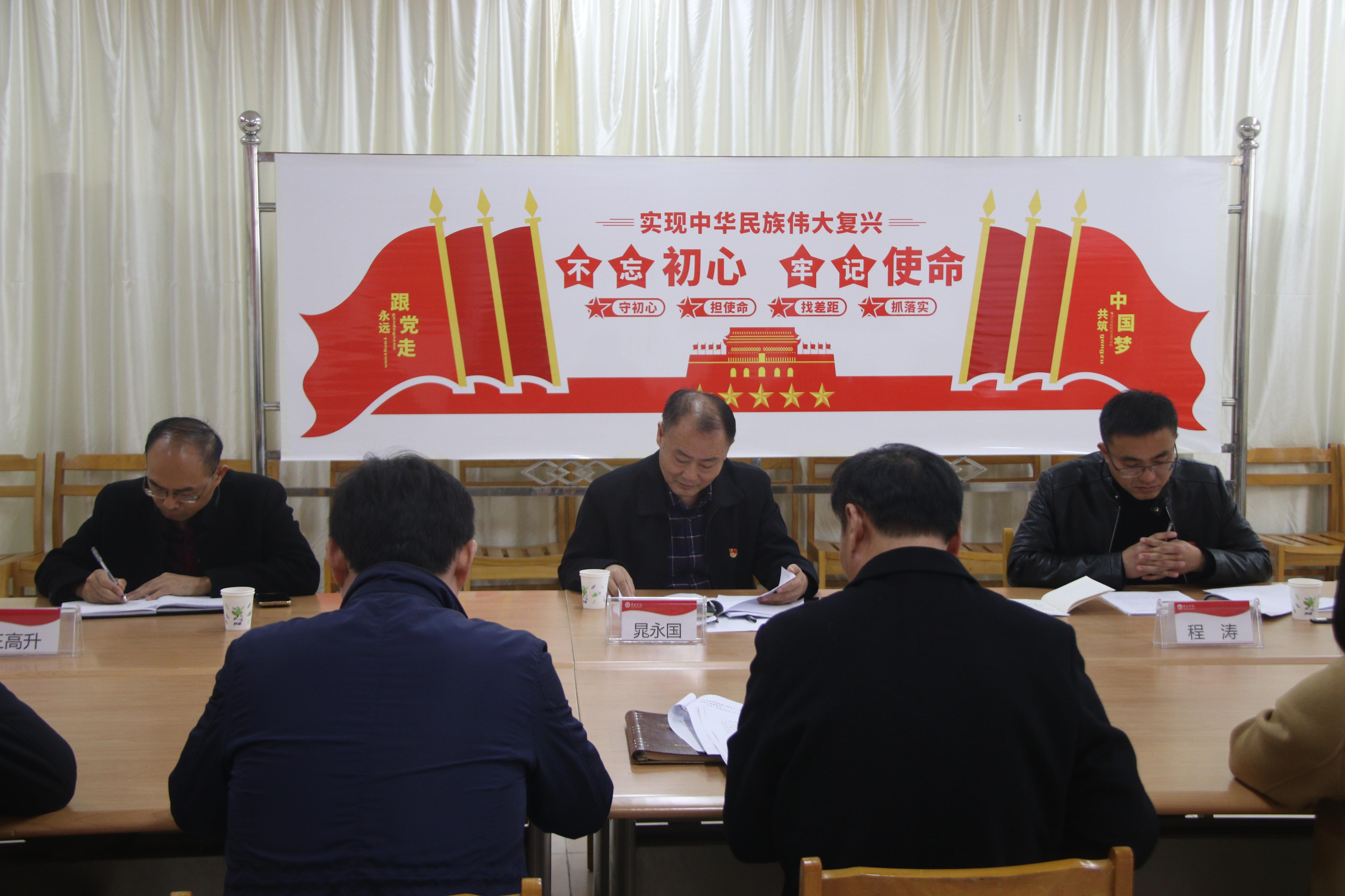 根据公司主题教育工作计划安排,12月5日上午,太阳集团tyc4633“不忘初心、牢记使命”专题民主生活会在理工楼2321资料室召开。校第二巡回指导组组长晁永国,成员王高升、程涛到会指导,公司党政班子成员李振清、王满堂、徐海波参加会议,党总支委员、党支部书记列席会议。会议由公司党总支书记李振清主持。