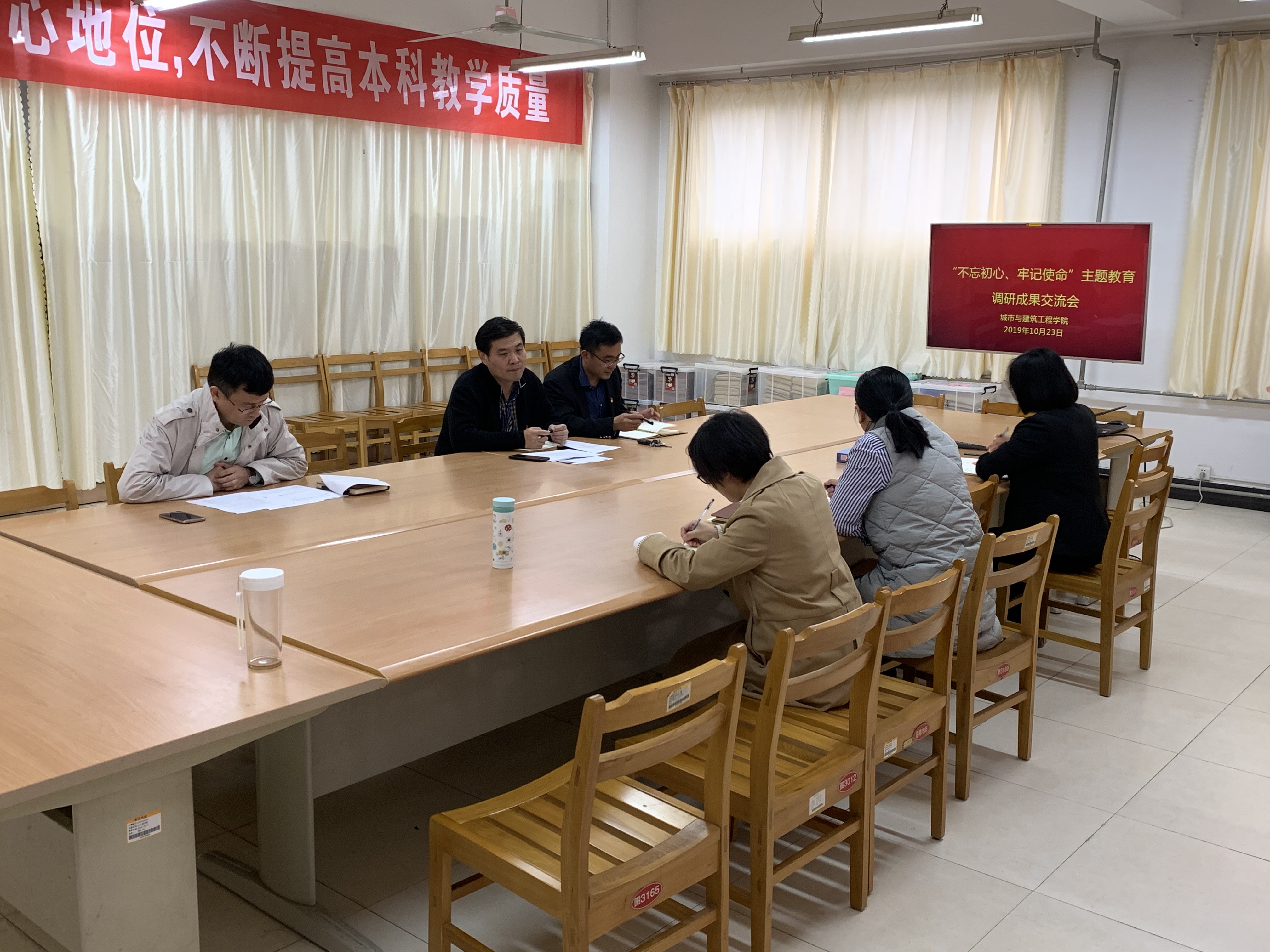 10月23日下午,城建公司在资料室召开“不忘初心、牢记使命” 主题教育调研成果交流会。校第二巡回指导组成员程涛同志到会指导,公司党政班子成员、各支部书记参加会议,会议由城建公司党总支副书记徐海波主持。