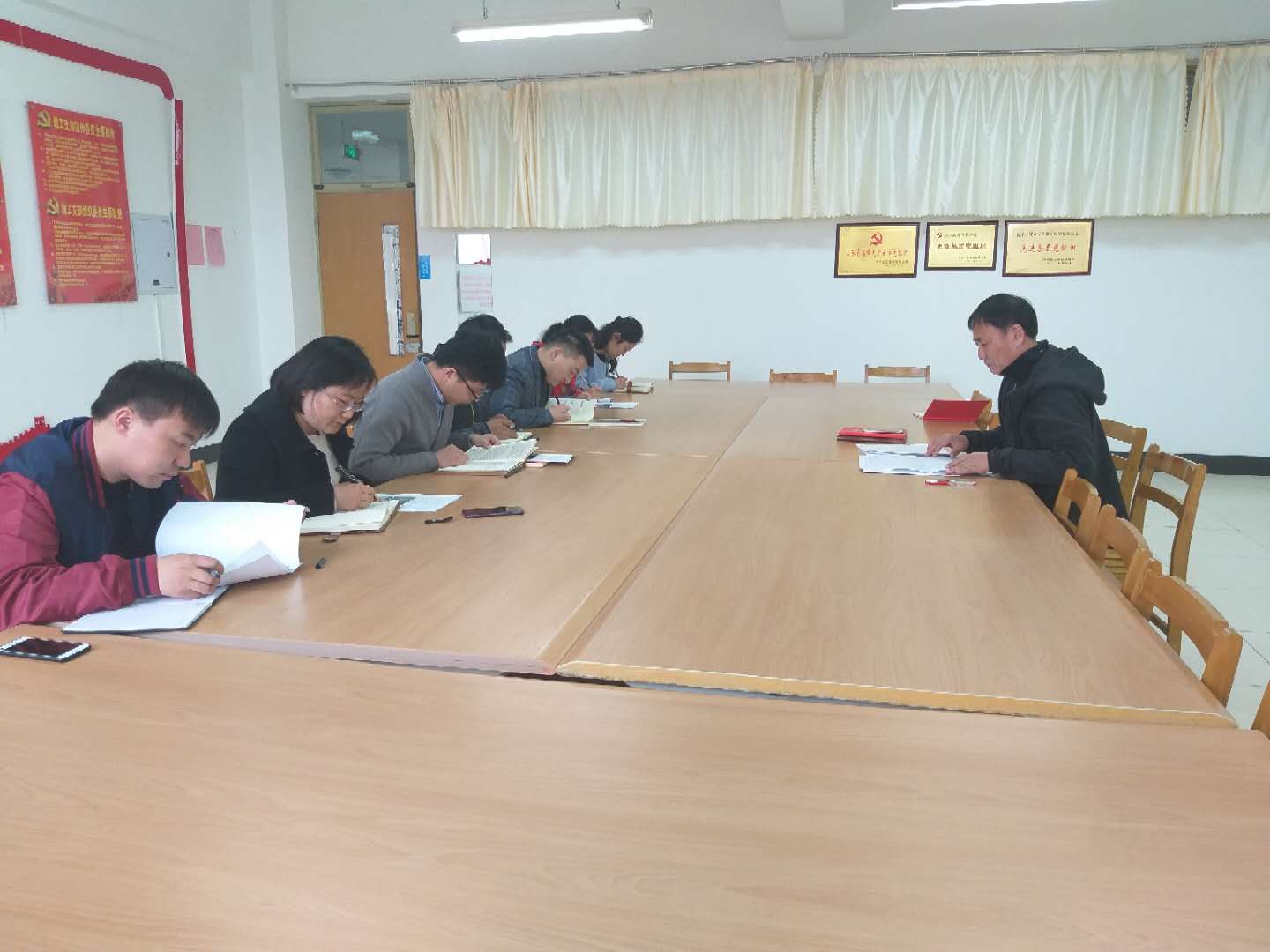4月2日下午,城建公司党总支理论学习中心组在理工楼2321室召开专题学习会议,深入学习习近平总书记在公司思想政治理论课教师座谈会上的重要讲话精神和新修订的《党政领导干部选拔任用工作条例》、《发展党员和党费工作操作规程》。党总支书记李振清主持会议,理论学习中心组全体成员参加学习。