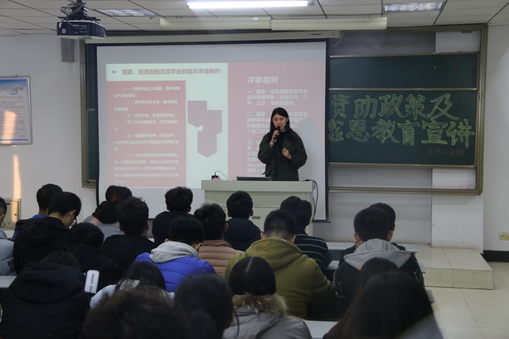 为让广大师生更加了解资助、奖助政策,城建公司特于11月21日晚六点半在理工楼2505举办资助政策及感恩教育宣讲,主讲老师张璇,2018全体员工参加了此次讲座。