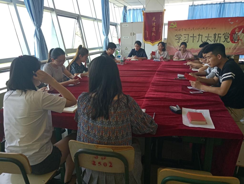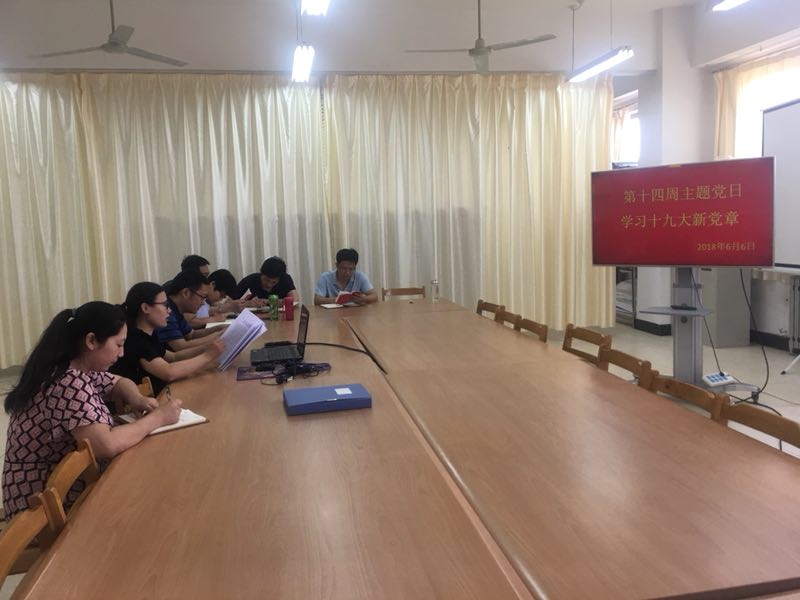 本次主题党日活动紧紧围绕“学习十九大新党章,为公司硕士学位授予单位立项建设做贡献”展开。会上,结合前期学习进展,各党支部书记带领党员同志重点学习了党的十九大对党章做重大修改的内容,并对新修订的《中国共产党章程》进行了全面系统的学习。各位党员同志一致认为,新党章是一部更加完善、更加符合时代要求的党章;对我们每一位党员来说,党章的修改也给我们提出了更高的要求,学习新党章、践行新要求是每个党员的义务。