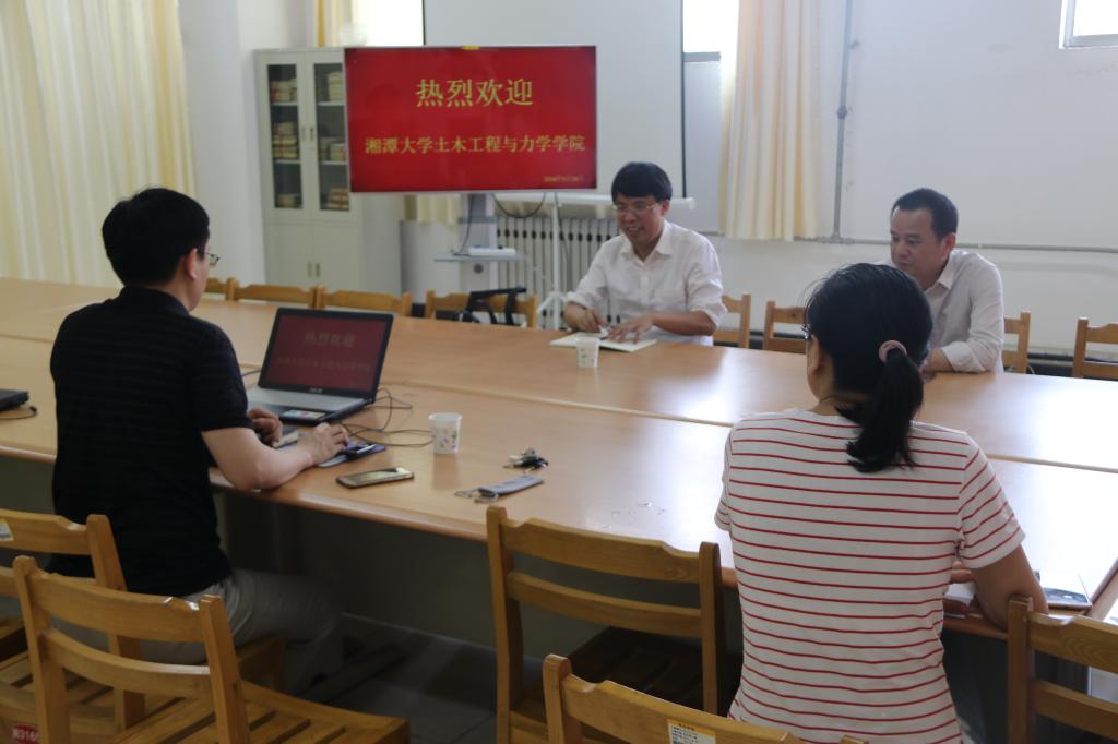 5月18日,湘潭大学土木工程与力学公司经理龙志林教授一行2人来太阳集团tyc4633考察交流。在太阳集团tyc4633资料室,龙经理就专业办学定位,近几年的发展情况等问题与公司领导教师进行了交流座谈。随后,龙经理针对行业中若干前沿热门问题为土木工程专业员工,进行了专题讲座。