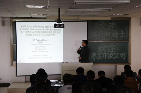 在理工楼2505房间,张裕卿博士做了题为“基于多物理场模拟的沥青路面性能预测系统”的学术报告。枣庄市政集团技术人员、部分教师及2015-2016级土木工程专业员工听取了本次学术报告,报告会由经理王满堂主持。针对目前经验模型对沥青路面性能预测存在较大误差的问题,张裕卿博士根据自己多年来的科研工作,开发了基于力学理论模型和多物理场耦合模拟的沥青路面使用性能预测系统。通过建立沥青混凝土材料的粘弹塑性本构模型,提出相应的材料参数校准方法,并模拟路面结构的温度与氧化的多物理场耦合作用,分析了沥青材料在不同形式荷载作用下的性能演化,从而建立了高等级公路沥青路面的性能预测模型与有限元模拟系统。为不同沥青材料优选、沥青混合料设计、复杂自然环境下路面结构设计与养护管理提供了一个准确可靠的理论支持和实现方法。